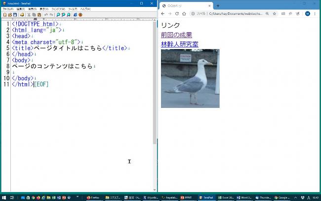 画面の配置の工夫最近のパソコンは、高解像度でワイドの大画面であることが多くなりました。画面の領域に余裕がある場合にぜひ試してもらいたいのは、左側にテキストエディタ、右側にブラウザとする画面配置です。テキストエディタで編集して保存、ブラウザで再読込して確かめ、またエディタで編集して保存、ブラウザを再読み込みして・・・と繰り返すと、画面を開いたり閉じたりしなくて済むので効率的です。もちろんお好みで、ブラウザを画面の上に、テキストエディタを下に、という方法でも良いでしょう。やりやすい方法を工夫してみて下さい。![]() SPONSORED LINK