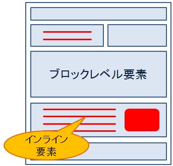 ブロックレベル要素の中には、文字や画像などのコンテンツとそれを操作・装飾するインライン要素だけでなく、ブロックレベル要素を組み込む(入れ子にする)こともできます。つまり、ブロックの箱の中に小さいブロックの箱を入れるイメージです。しかし、インライン要素には、文字や画像などのコンテンツと他のインライン要素だけしか設定できません。ブロックレベル要素を設定するのはダメです。 先にも述べたように、最近ではこの2つの分け方を言わなくなりました。HTML5になってからです。とはいえ、2つに分けるやり方はわかりやすいですし、スタイルシート(CSS)を使う際にもこの分け方は役に立ちます。今は頭の片隅でよいので、覚えておいて下さい。 ![]() >>次のページへ進む