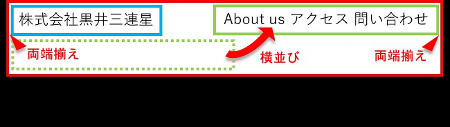 わかりますか?この「フレックスボックスで横並びにして配置を整える」というやり方は、あとで出てくるナビゲーション(メニュー)の設定でよく使いますのでとても重要。ただかなり古いブラウザの場合は対応していないこともあるようで、その場合は「floatプロパティ」を使ったりします。このサイトではやりませんが「floatプロパティ」について知りたい場合は、兄弟サイト「ウェブサイト作成入門・floatによるボックスの配置」を見て下さい。 SPONSORED LINK