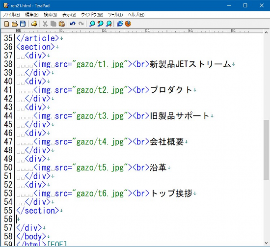 保存できたと思ったらエクスプローラで確認。webkisoフォルダの中のgazoフォルダの中にt1.jpg~t6.jpgまでの6つの画像ファイルはありますか?あればOK。ない場合は移動させておきましょう。 SPONSORED LINK